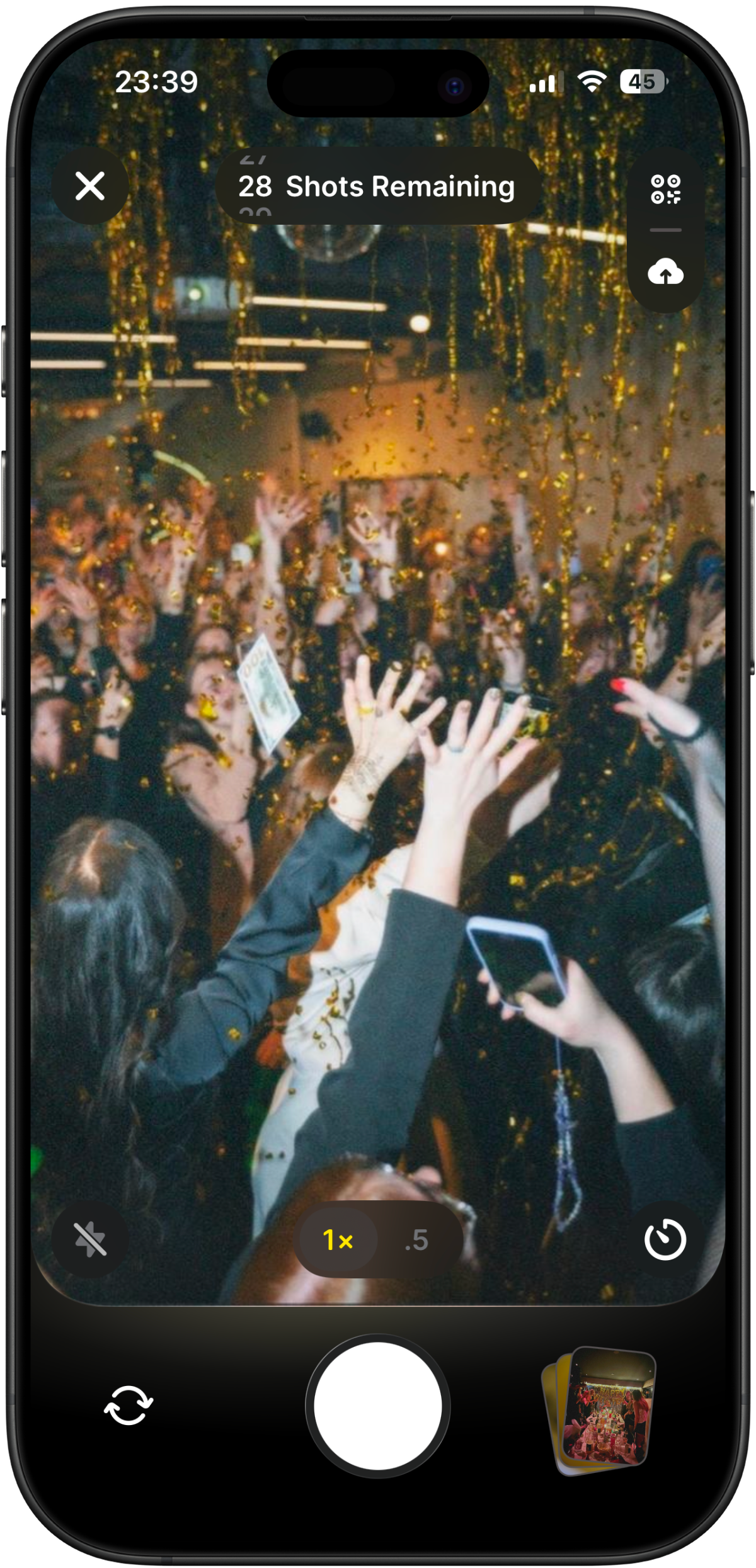 Ein QR-Code, alle fotografieren, Fotos entwickeln sich am nächsten Morgen. Die besten Partyfotos sind immer auf dem Handy von jemand anderem, bis jetzt.