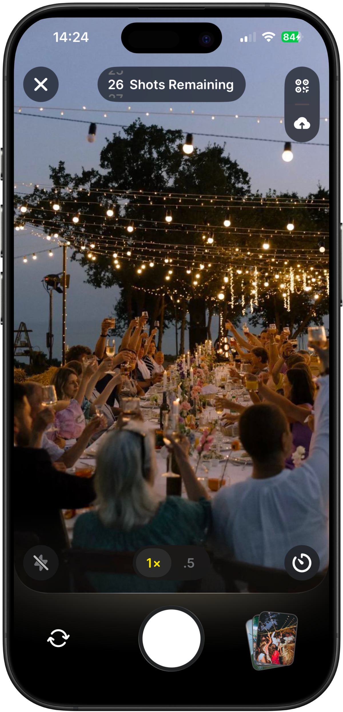 Print the QR code on your table cards or display it at the entrance. Guests scan once and start shooting, no app download or account needed.